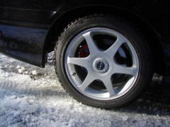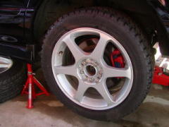 | タイヤ・ホイール(冬仕様) 前車BFのものをそのまま使用しています。 ホイールはVZ−Rについていた純正の15inchホイール、 タイヤはワンサイズダウンのブリザックMZ−02 185-65-15です。 041230 に16インチのタイヤに(やっと)入れ替えました。 (↓ の方に載せています。) ![]() インプレもなにもないのですが、 タイヤが2サイズ細くなって、扁平率も変っているので とりあえずスタッドレスなのに静かになりました。 (今まであまり聞えなかったエンジンの音が聞えるようになった) これも窒素ガスを入れておきました。 (静粛性の向上以外にも、抜けにくくなるなどの効果があるらしいです) このサイズでは、とりあえずコーナーなどでは夏タイヤより しっかり減速しているので、かえって安全運転になって いいのかも知れません??? でも、来シーズン(02〜03シーズン)は交換かなー。 16inchにすればブレーキローターも換えられるんですが・・・ |