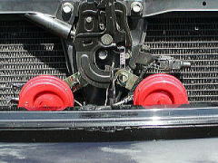| ナンバープレートカバー 2001.07.21(前)と 25(後)別々に購入し、それぞれその場で取付けした。 満足度 ★★☆☆☆ セイワ製の、よくその辺で売っている1漱石くらいのヤツです (^_^;) 決して、オービ○逃れのヤツではありません。 なぜ、このようなものを着けたのかといいますと、北海道に行く予定だったからです。 あそこは自然が壮大な分、お住いの昆虫もデカくて クルマに付くと落すのが大変です、「せめてナンバーだけでも」 というのが真相です。 案の定、一番落しにくかったナンバーには昆虫が付きませんでした。 ラジエターは夏休みの宿題(>標本)状態でしたが・・・ |