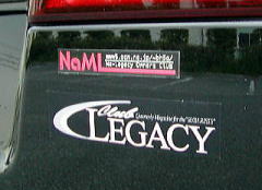 | 各種ステッカー 気分で貼っています、あまりゴテゴテしない程度に・・・ ![]() リアのナンバーの左側です。 (ビル脚を着けた直後に下のヤツを貼りました) ![]() STI東京にて購入しました。(カーボン調です) ![]() 同じくSTI東京にて購入しました。(RS用のバネと同時に) ゴールドは成金っぽくて??だったんですが、シルバーは「RS」と セットでしか売っていないので、高かったです。 2002年4月に NAML のステッカーが出来たので、 早速貼ってみました。(下はご存じフ○○トの ステッカーです) ![]() サイドマーカーの下部です、一応左右対称に・・・ NAMLステッカーは磁石の上に貼って、両面テープ止めを しています(厚みを出したかった・・・) ![]() リアのナンバーの右側です。 下のステッカーは、2002年3月31日に取材を受けた(受けさせた)証です。 しっかり、掲載されました。(02年6月20発売) ![]() 助手席側ワイパーの部分です、極力内側の 写り込みが少ないように・・・ (車検はノープロブレムで通りました) ![]() まさに、NOT かたつむりです!! 2002.07.22 輸出用のエンブレムが手に入ったのでリアだけ ローテーションしてみました。 (取材を受けたステッカーは大きすぎるので、剥がしてしまいました >もったいなー) ![]() 左側です。 ![]() 右側です。 ![]() リアの全体です。(少しスッキリしましたっ) 2003.07.21 外に貼ってあった 「NAML」のステッカーは 剥がしました(経年変化のため、表面のフィルムがパリパリ・・・) あと、 リアゲートの右側は 「STi」も剥がしました・・・ そして、 ↓ こんなになっています。 ![]() 助手席エアバック部ですっ。 「STi」と「NAML全国オフミ」のモノですっ。 2003.12.29 八戸さん がNAMLのオーナメントを作成されたのを 分けて頂きました。 ![]() リアゲートの右側に貼りました。 ![]() こんな感じですっ。 |