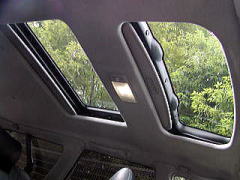 | サンルーフ 満足度 ★★★★☆ これこそ、自分ではあとから追加出来ないので! これも初めから着いていました、ツインルーフです。 フロントはチルトアップ、リアはスライド式です。 (中はサンシェードになっていて、設計の苦労が感じられる 開閉方式になっています) 元々タバコを吸う人間で、前車まではかなり吸っていたのですが、 BHになってからは、とりあえず車内禁煙が続いていますので、 排煙用の機能としては役にたっていません。 夏の暑い日には開けられないし、冬はルーフボックスを着けるしで なにか宝の持腐れ!になっているような気がします。 案外、夜にサンシェードを開けているといい感じです。 前車のファミリアとシルビアには着けていました。 (BFはルーフレールが同時装着出来なかったので・・・) まぁ、自分にとっては贅沢品ですかねぇ。 新車で買っていたら、着けなかったでしょう・・・ ![]() 内側から見た絵です。(あまり両方同時に開けたことはありません) ![]() 外側です(これで雨が漏らないのはスゴイ作りです・・・) |