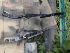 | ワイパーブレード 2001.8.12 PIAA製のものに交換。(前のがいつ換えたかわからなかったので) 満足度 ★★☆☆☆ ![]() まぁ、定期交換対象のものでしょう・・・ といいつつ、まだ交換していません。(02年7月現在 (^_^;) ) 言い訳ですが、窓のガラスの清掃をちゃんとしていると あまりゴムがヘタらない気がします・・・ 2003.05.17 約2年の月日を経て ついに交換しましたっ。 (^_^;) 遅すぎっ。 近所のタ○ヤ館で特売していた、BOSCH製のブレードです。 なんと 42,250kmでの交換です。 (走行距離、約25,000km でした・・・ >ダメだなぁ) ![]() 2005.07.30 更に2年を過ぎて交換です。 今回は68,800km やはり25,000kmを越えています。 モノは上と同じBOSCH製です。 (同じく特売で1つ 1.05k >安いと思うのですが・・・) ちなみに運転席側、550mm 助手席側 500mmです。 ![]() よせばいいのにアームの塗装がしょぼくなって来たので塗ってみました。 ![]() 乾かしています。 モノはフツーのラッカースプレーです。(0.39k) 例によってスーパーの買い物待ちの時に塗ったのですが 性格がガサツなため、塗装はムラだらけになりました。(汗) これは「とほほ」かもしれません・・・ こんど塗り直してみようかな〜。 ・・・後日、塗り替えました。(050814) |