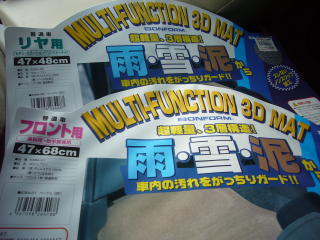 | 満足度 ★★☆☆☆ 2008.12.31 暇つぶし!?に自動後退へと行った時に購入。 いわゆる3Dタイプと呼ばれるやつです。 現在使っているリベラル製のマットを汚したくないという 哀しいビンボー根性!?が働いて購入してみました。 端部がお皿のように立ち上がっていて、 埃・砂利・水分等をマットの外にこぼれないようになっています。 冬になってスキーシーズンを迎えたので 一応、その対策・・・のつもりです。 ![]() こんな製品です。 大垣産業[ボンフォーム] 3D立体フロアマット 『3DシェブロンST』の同等品だと思います。 (近所の自動後退にてたまたまベージュがあったので購入) お値段ですが、4枚合計でも5kはしませんでした。 フロント1,344円×2 リア1,029円×2 |