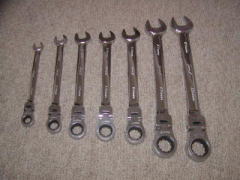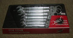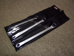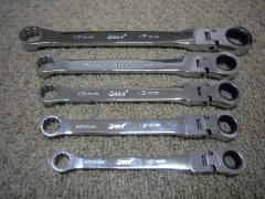 首振りギアレンチ (DeeN) ファクトリーギア東京下町店にて ある日「ガレージ-k」にて使ってみたところ、気に入ってしまいました。 シグネット製が有名だと思うのですが、 価格の安さにひかれてこっちにしました。 なんでもギア部分の(本体側の)加工は シグネットが切削による穴明けで、Deenは打ち抜きらしいです。 ![]() 左から 8, 10, 12, 13, 14, 17, 19mm の7本セットです。 上のギアレンチ同様、 アダプターを付けることにより、ラチェットのような使い方が出来ます。 こちらは13mmで、 3/8sq というヤツを同時に購入して来ました。 ![]() 当初の梱包状態です。(ケースは使わないなぁ・・・) これは、なんか良く使いそうな予感がします。 ウチにはエアラチェなんてないもので・・・