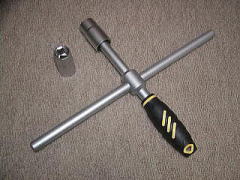 クロスレンチ その2 ホイールも変わり、ナットのサイズも21mmになり 譲って頂いたとはいってもブランド物のナットが着いているので、 ホイール・ナット共に傷を付けたくなかったので買いました。 外せるので携帯性はよろしいです。 ![]() 組み立てるとこのようになります。 造りは雑ですが、そんなに問題ないだろうと思っています。 17×19 21×23 のソケットが付属していていました。 (いちおう面接触の 12.7sqです) 下部のグリップがフリーになっていて、作業性がいい筈!?です。 ![]() ナットと同時にもりたさんから、ko−ken社製のソケットも頂きました。 (2005.08購入) |