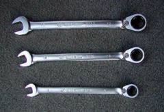 ギアレンチ (KINGTONY) ![]() これは応用範囲が広そう!!です。 (一目惚れですっ) 下から 8・10・12mm 普通のギアラチェは裏表を返して使いますが、 これはレバー1つで、どちらでも回せるギアレンチです。 (KINGTONY製) 多分、あまり知られていないようですが、 台湾のメーカーで、有名メーカーのOEMをこなしているみたいです。 サテンメッキ仕上げ は、かなりいい感じです。 アダプターを付けることにより、ラチェットのような使い方が出来ます。 12mmは、 3/8sq 10mmは、 1/4sq 10mmは、ビットを付けることも可能です。 なので、これがきっかけで 1/4(しぶいち) の世界にも逝ってしまいました・・・