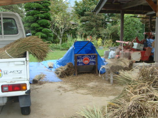 (9) 搬 入:9月23日午後、前日〜田に刈り干し=天日干し。反転したりして乾かしたものの生乾きだったが、