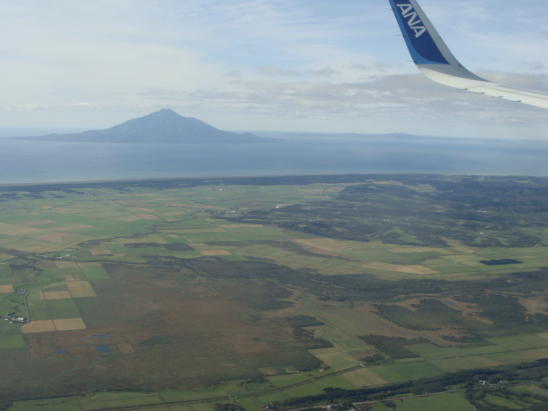 利尻富士と、その右後方カスカに礼文島 もうすぐ稚内空港 |